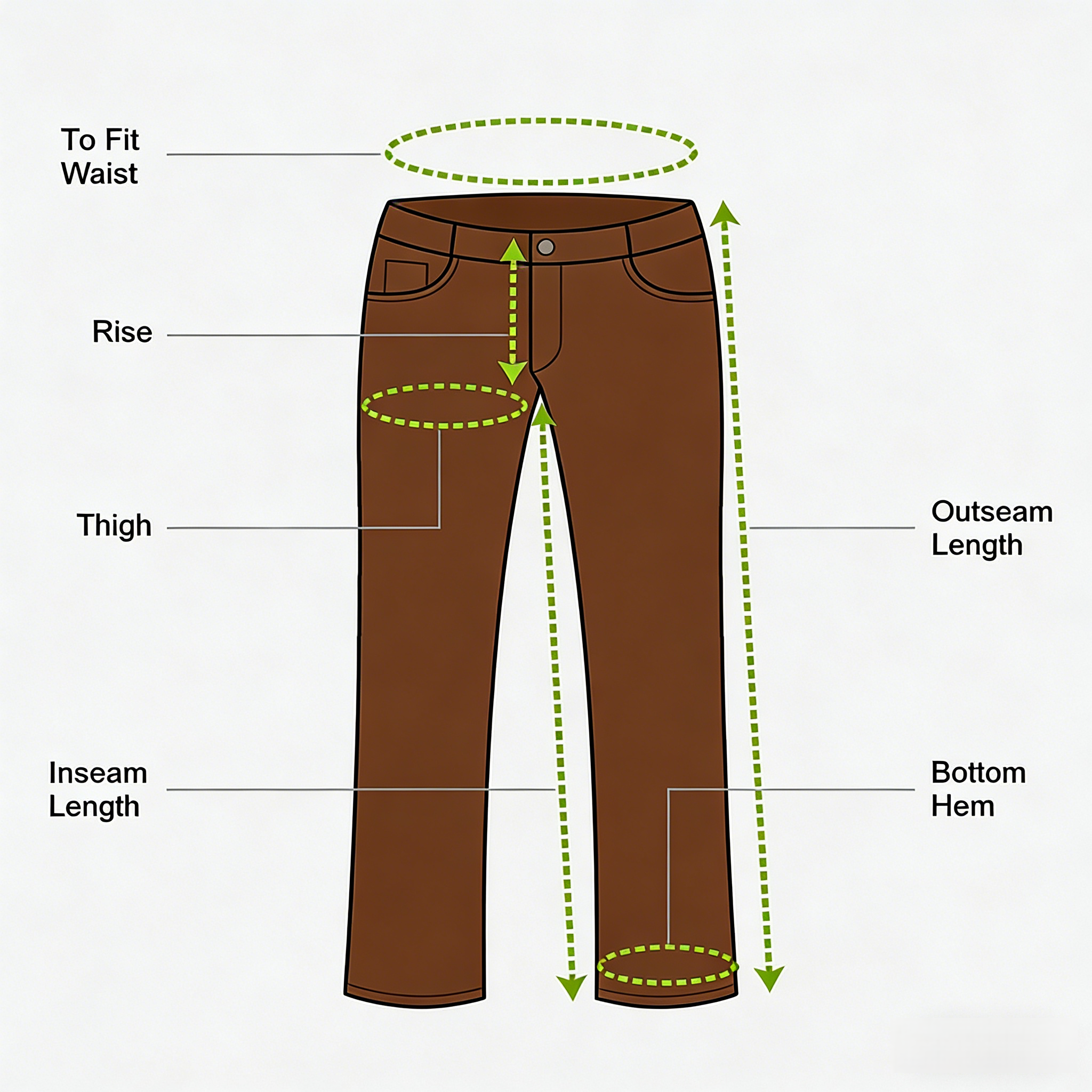 | Size | Waist | Rise | Thigh | Inseam | Outseam | Hem |