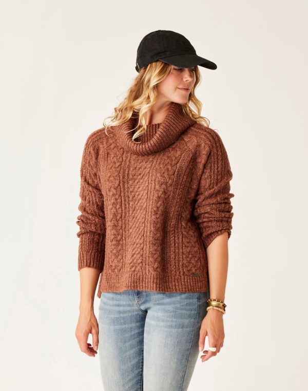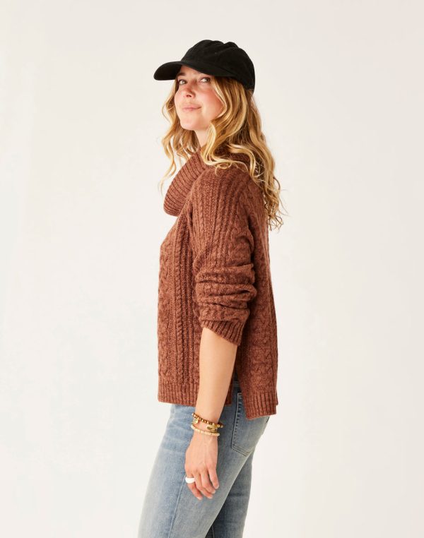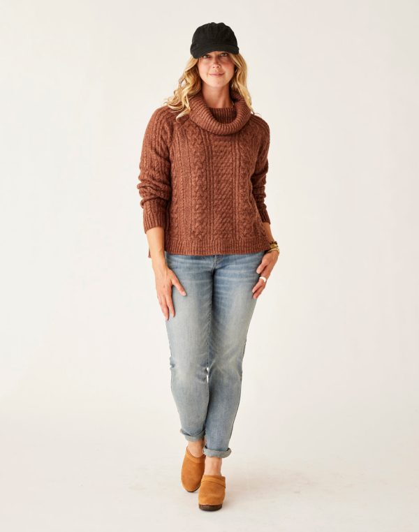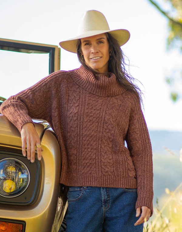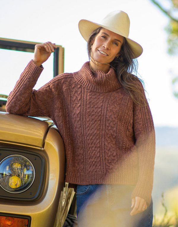 The Field Sweater brings the heat this winter with being our warmest and softest sweater yet. Her cowl neck, side slits, allover cable pattern and Recycled Tarmu yarn make her your go-to dress up or casual throw on, weekend sweater.