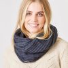 A textured infinity scarf. The Julie is the ultimate cozy accessory — the kind of scarf you can pull over your face and sleep in on those red-eye flights. Pairs well with jeans, your favorite sweater, and hot cocoa at the lodge.