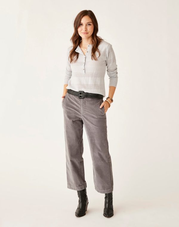 A cord pant so soft we call it our butter cord. Its velvety soft touch and hint of stretch makes it the perfect pant to dress up or down. Fitted through the hip with a slight crop at the ankle, these wide leg cords lend an air of effortless California cool to any look.