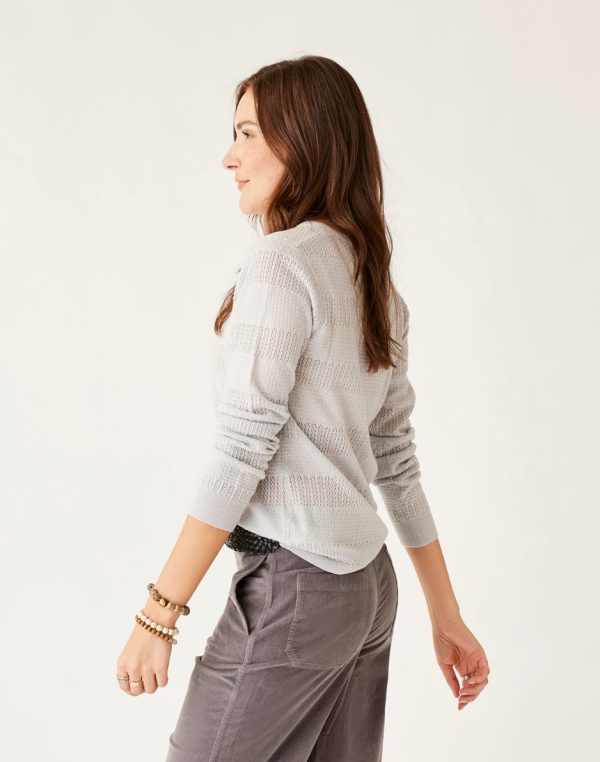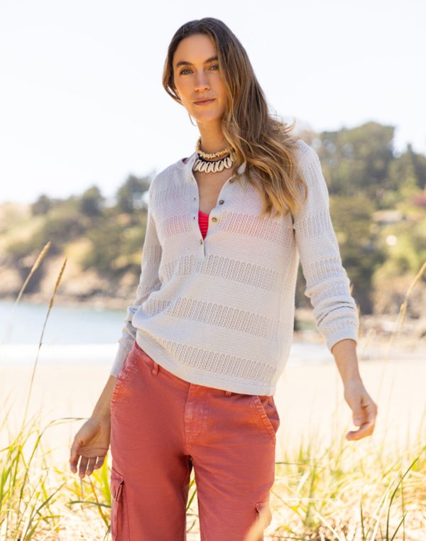 This rock steady layering piece goes with everything without missing a beat. Recycled Tahoe Fabric, allover pointelle stitch and coconut shell buttons bring little details that drop the mic.