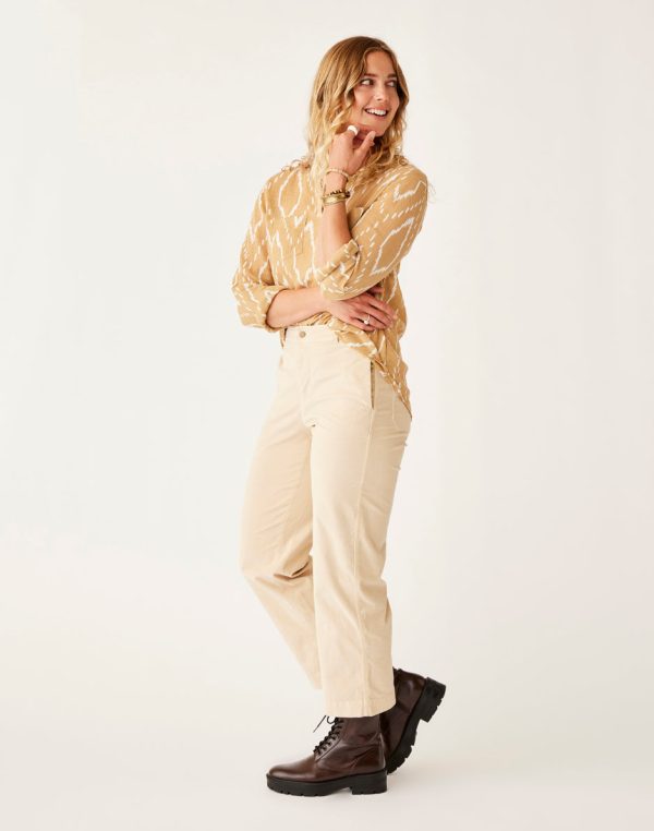A cord pant so soft we call it our butter cord. Its velvety soft touch and hint of stretch makes it the perfect pant to dress up or down. Fitted through the hip with a slight crop at the ankle, these wide leg cords lend an air of effortless California cool to any look.